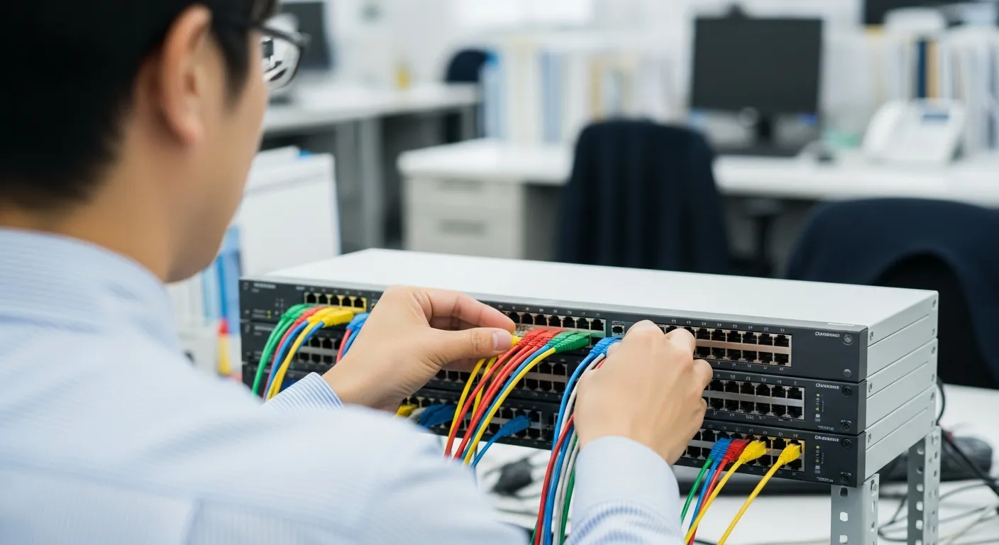 難しい設定やLAN配線は、岡山の自社スタッフが現地で全て行います。専門知識は一切不要。お任せください。